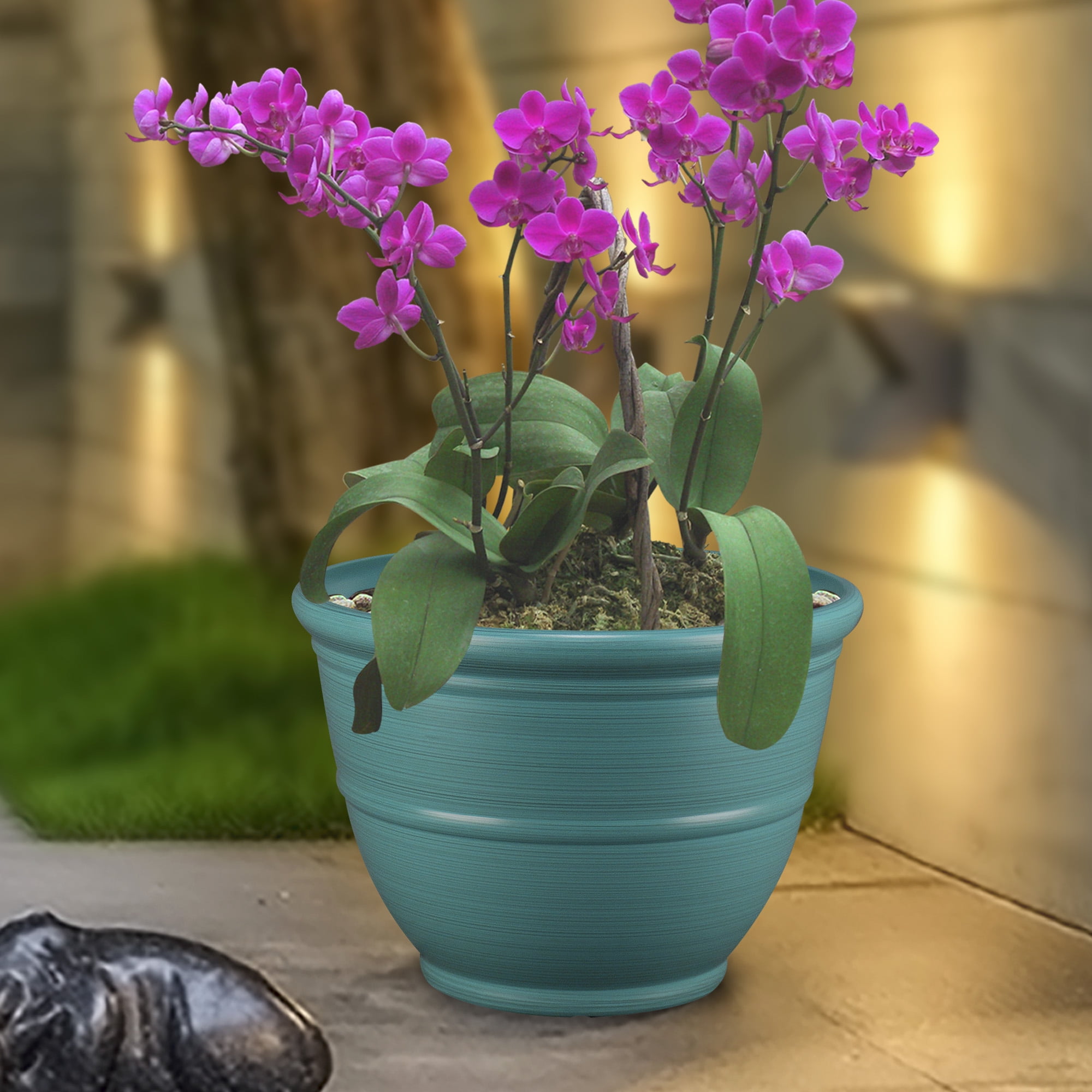 Mainstays Ferenza Orange Recycled Resin Planter 14in L X 14in W X 10in H Walmart Com